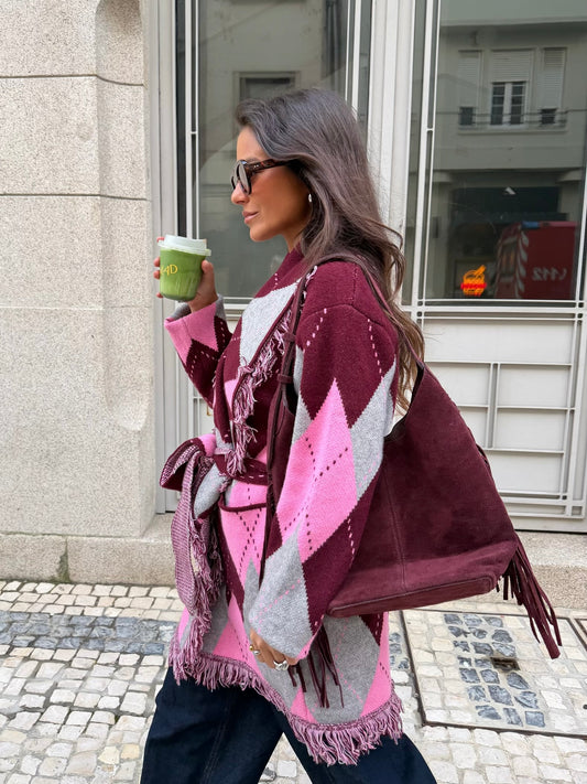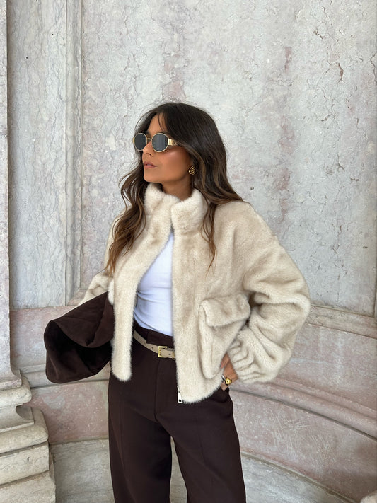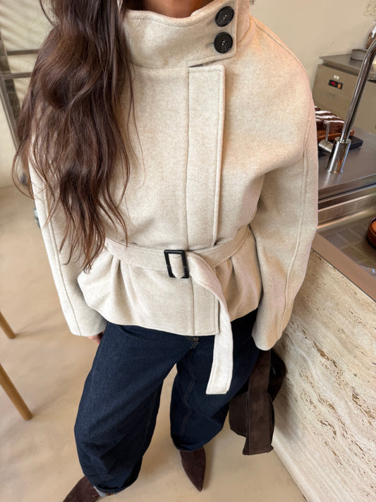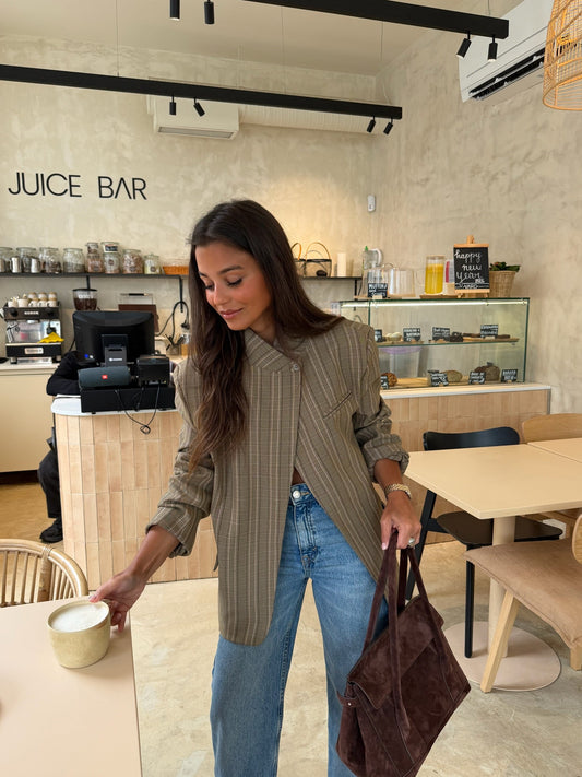 Asymmetrical Blazer in Taupe Plaid - PRE ORDER Shipping 13/04 to 17/04