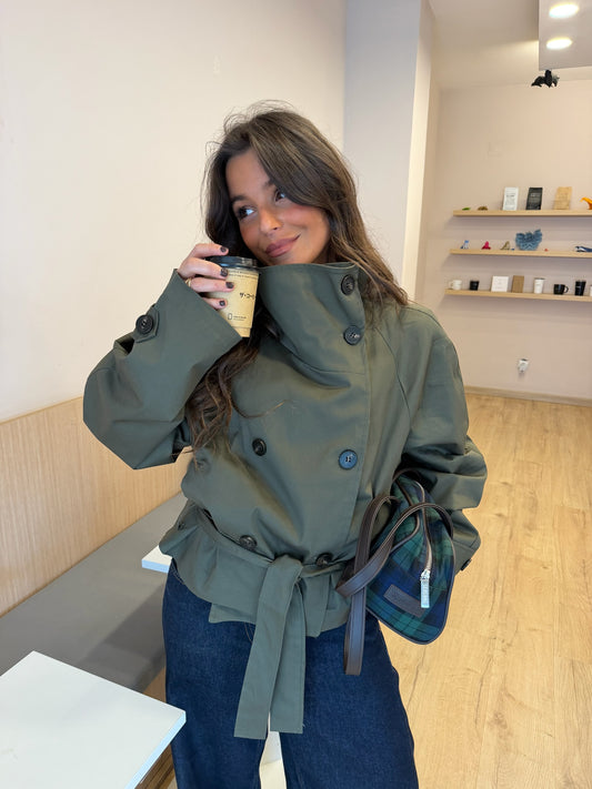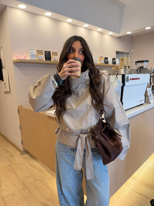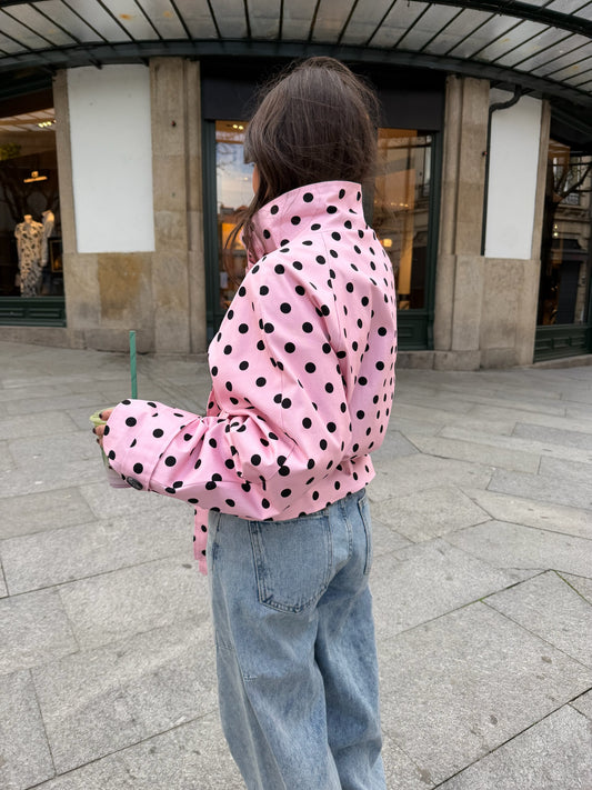 Cropped High Neck Polka Dot Trench Coat in Pink - Shipping/Envio 20/04 to 24/04